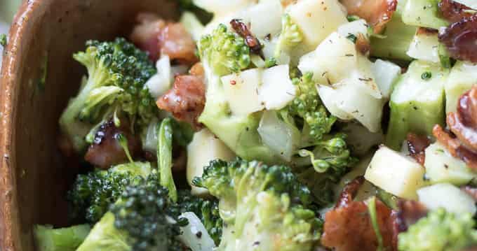 This broccoli salad is a fresh mixture of broccoli, bacon, cheese, and onion. Bring this staple dish to your next potluck or family gathering!
