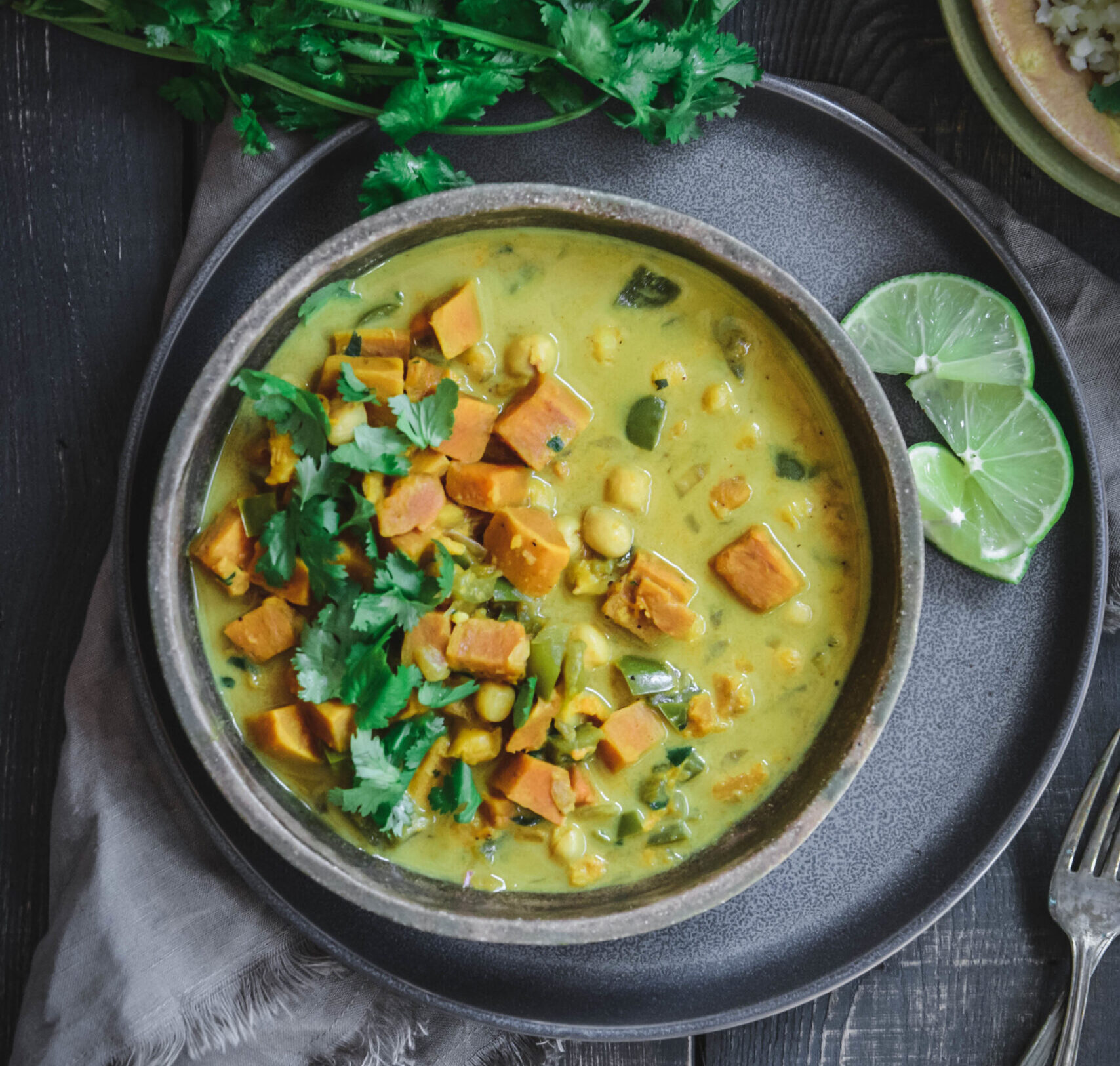 Chickpea Curry | Coconut Chickpea Curry with Sweet Potatoes is a perfect, comforting vegan weeknight dinner that can be ready in 40 minutes.